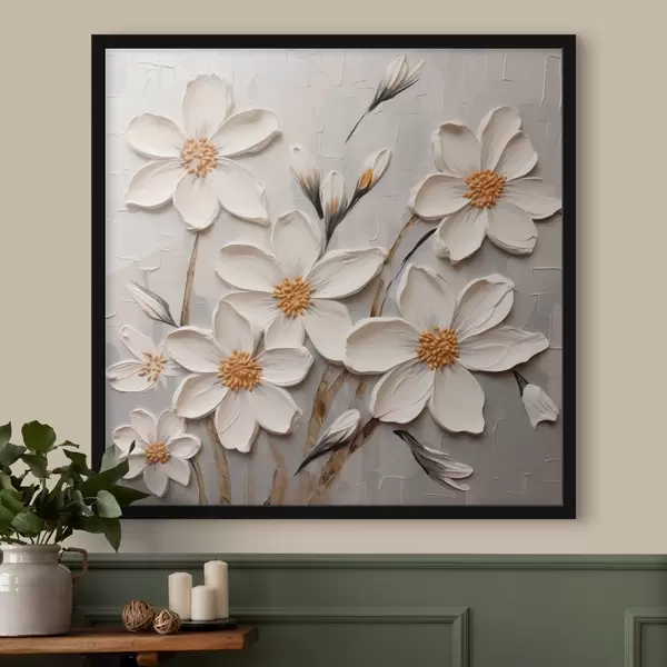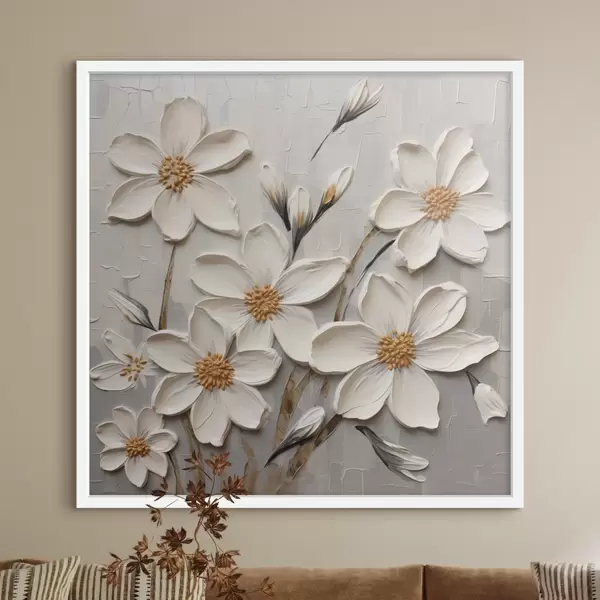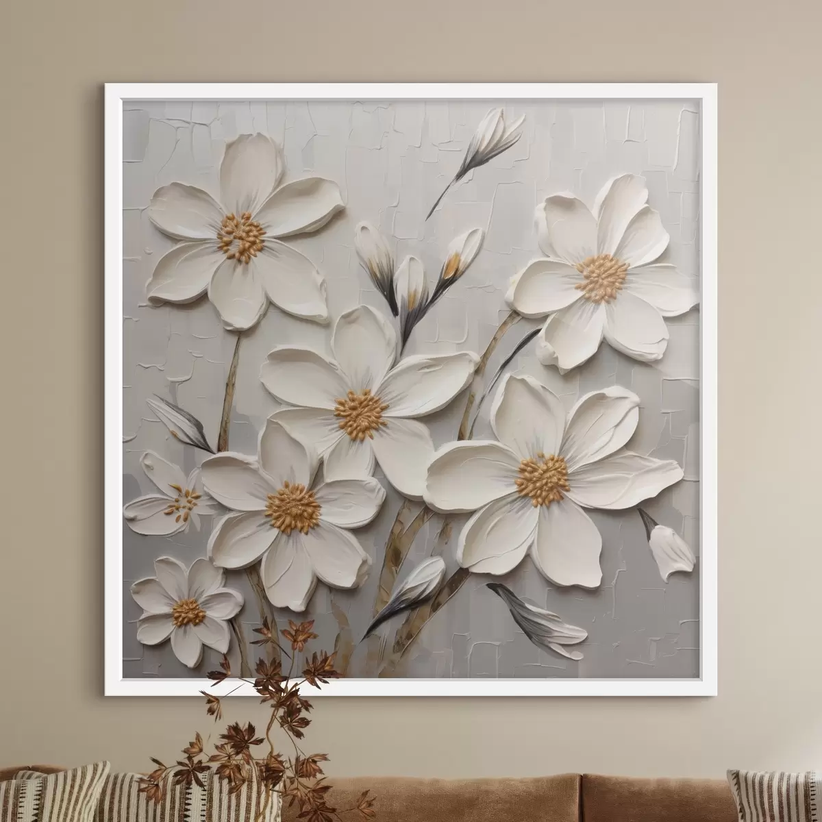 Poster Weiße voluminöse Blumen im Malstil mit großen Pinselstrichen Nr f43366