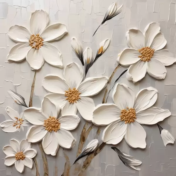 Poster Weiße voluminöse Blumen im Malstil mit großen Pinselstrichen Nr f43366