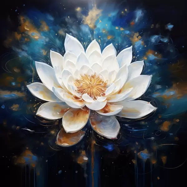 Poster Weißer Lotus auf blauem Hintergrund im Malstil Nr f43371