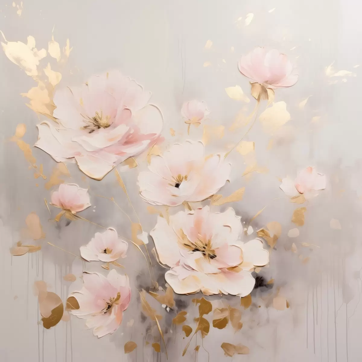 Poster Rosa elegante Blumen im Malstil Nr f43372