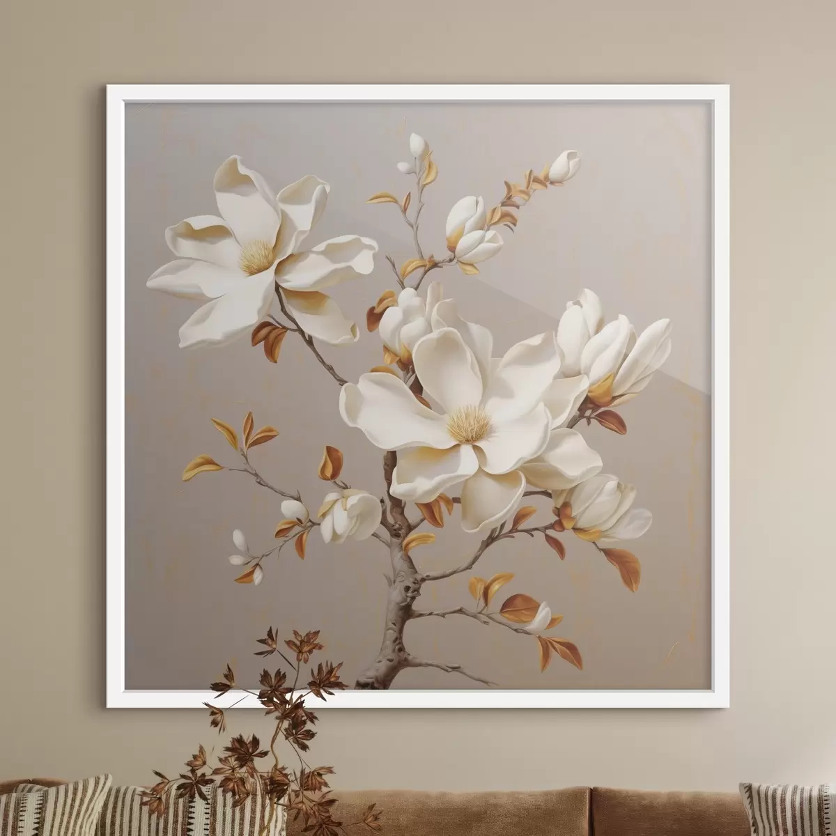 Poster Anmutiger Magnolienzweig in Beigetönen Nr f43373