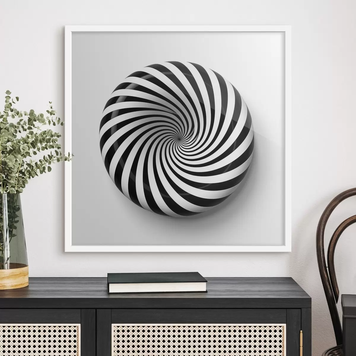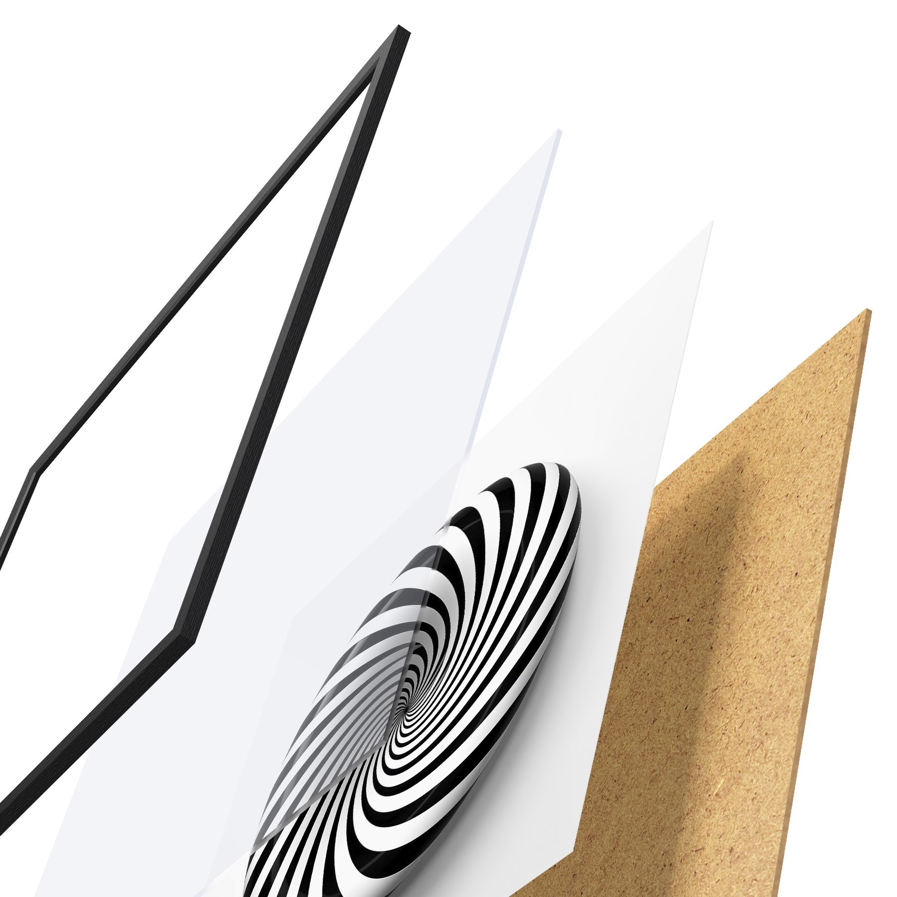 Poster Geometrische, wirbelnde Grafik, schwarze Grafik auf weißem Hintergrund Nr f43376
