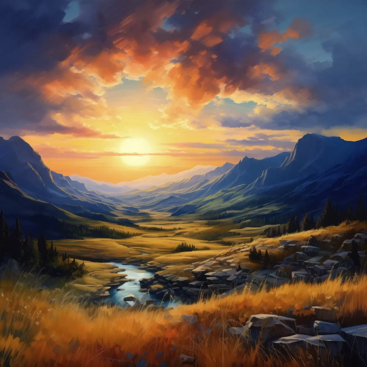 Poster Berglandschaft bei Sonnenuntergang Nr f43378