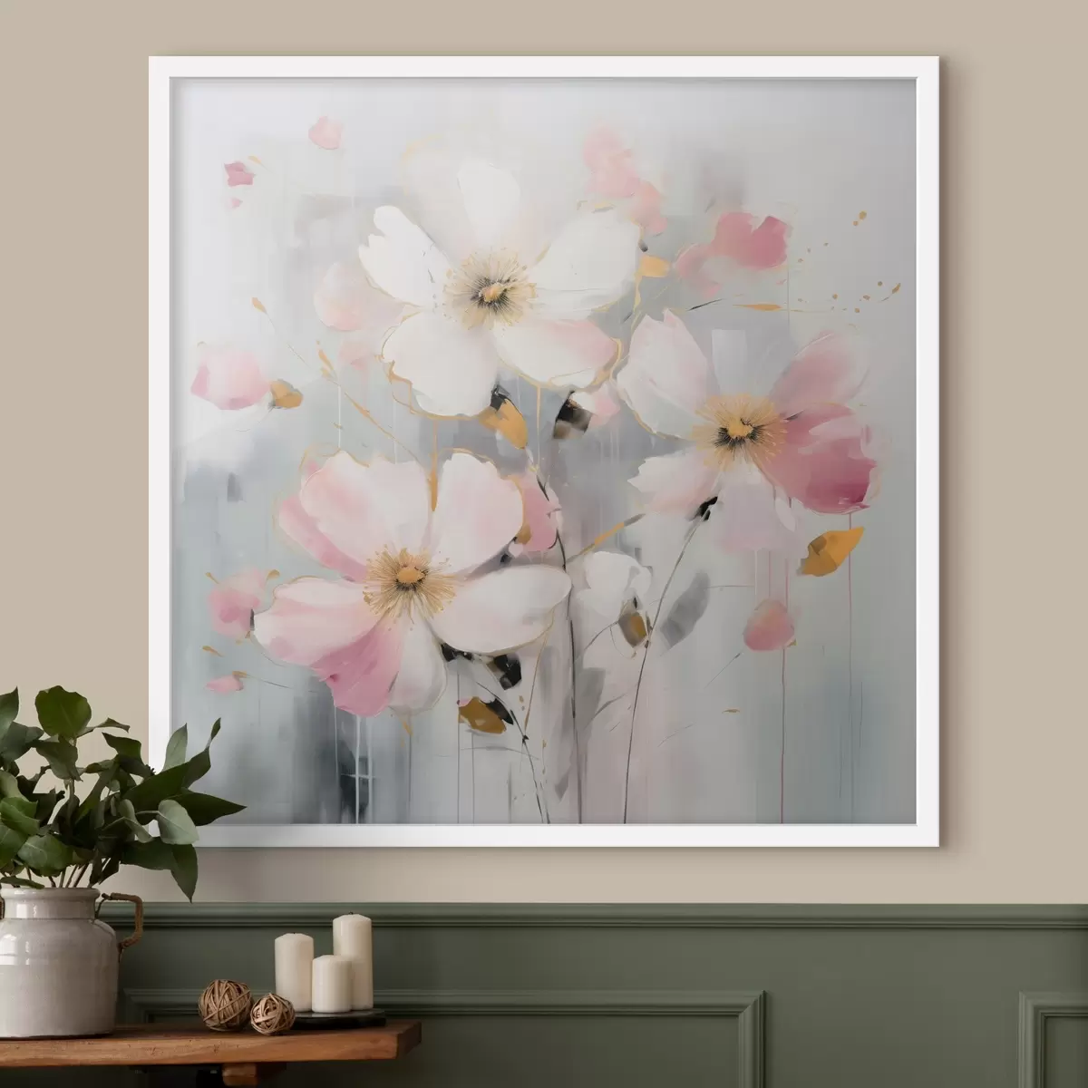 Poster Blumen in sanften Tönen mit großen Pinselstrichen im Malstil Nr f43380