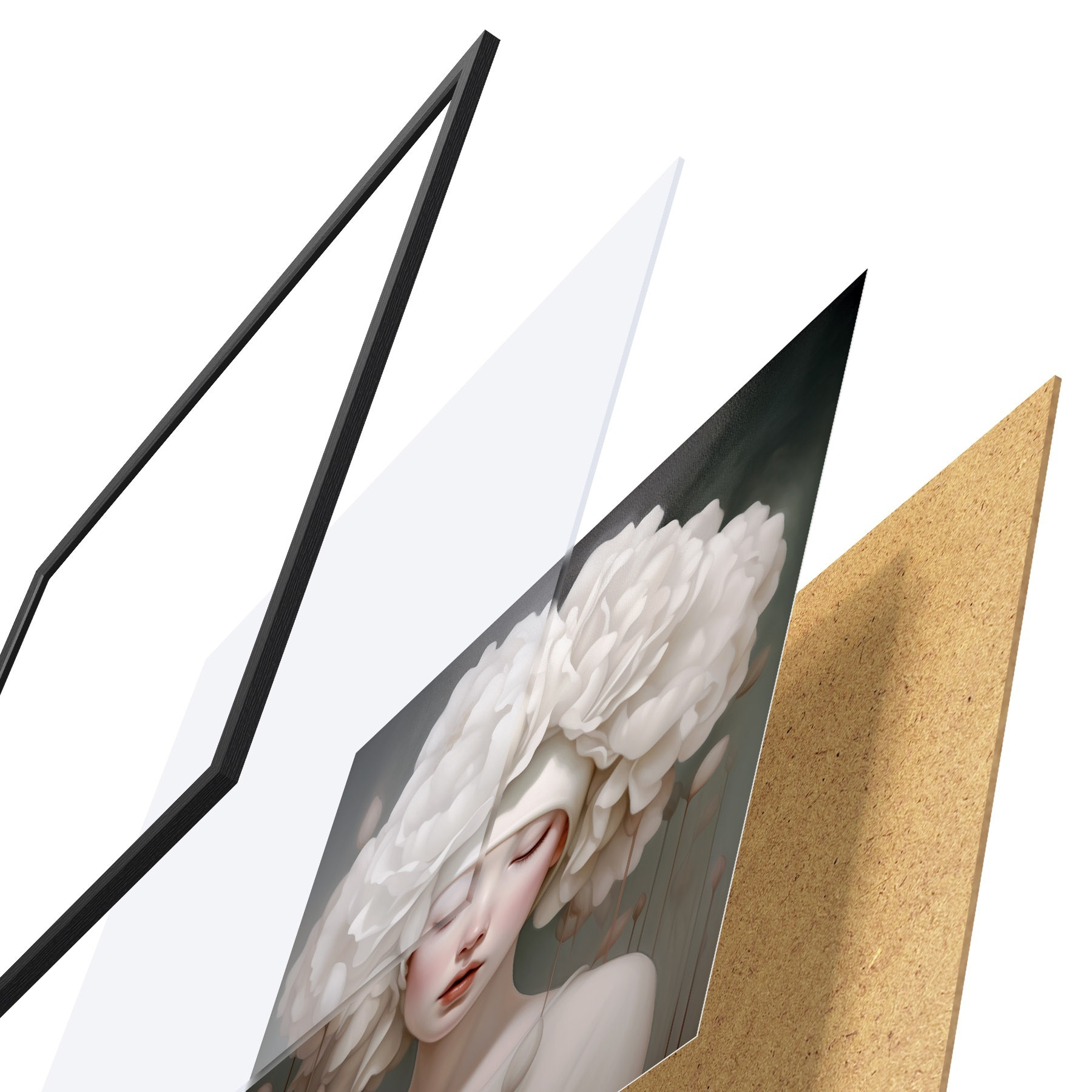 Das Poster besteht aus einem Rahmen, Plexiglas, einem gedruckten Bild und einer Rückwand aus Spanplatten. Dank der Halterungen auf der Rückseite kann das Poster sofort an die Wand gehängt werden.