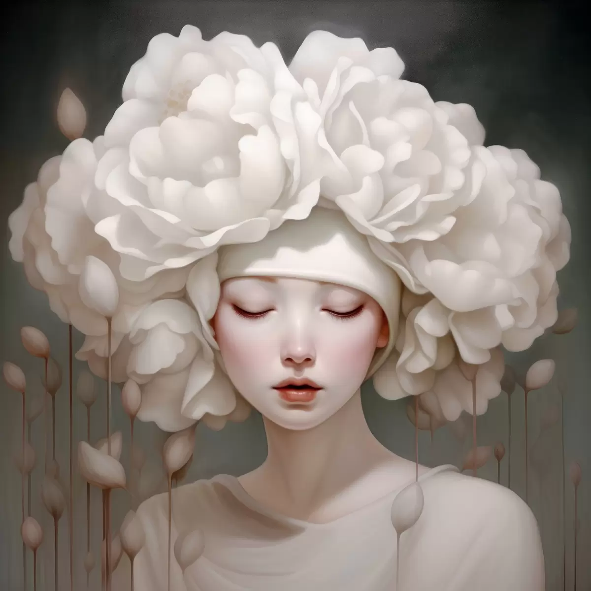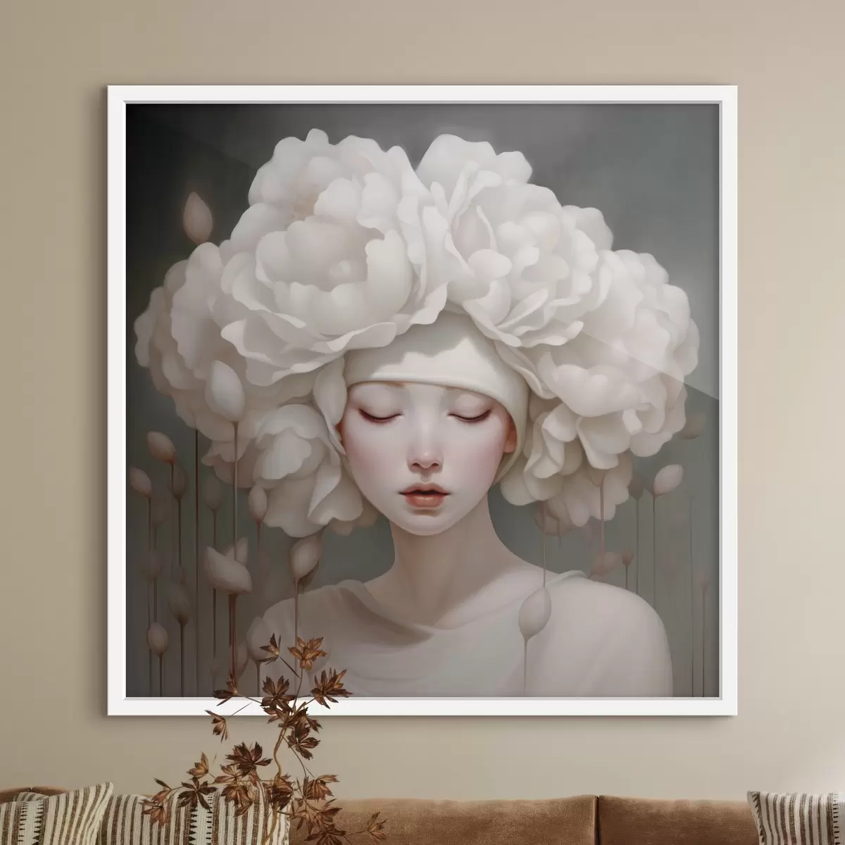 Poster Mädchen mit Blumen auf dem Kopf in sanften Tönen Nr f43385