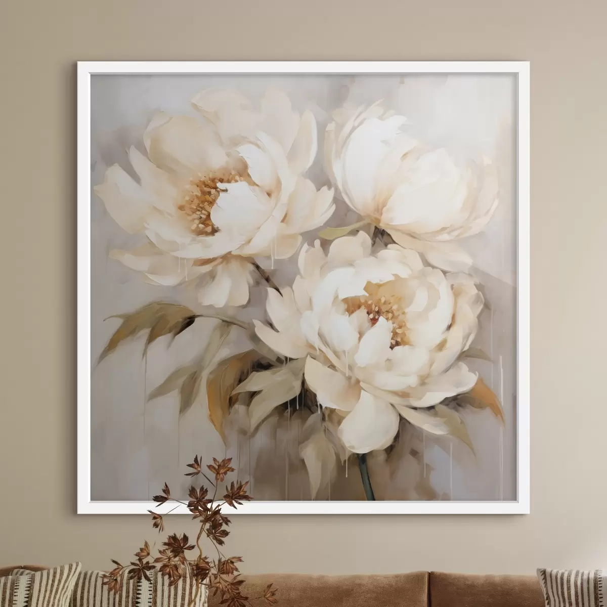 Poster Zarte Pfingstrosen in neutralen Tönen im Stil abstrakter Malerei Nr f43387