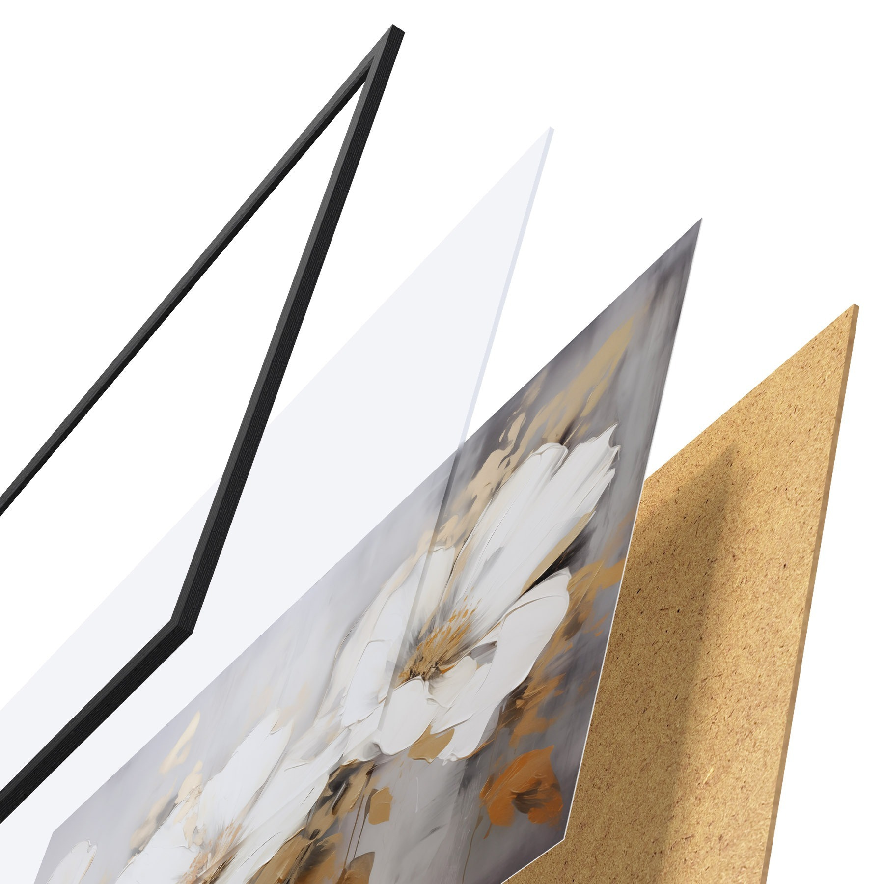 Poster Weiße Blumen mit gelben Blättern auf einem weißen Hintergrund, dicke Pinselstriche Nachahmung, strukturierten modernen Stil Nr f43389