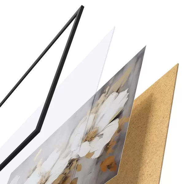 Das Poster besteht aus einem Rahmen, Plexiglas, einem gedruckten Bild und einer Rückwand aus Spanplatten. Dank der Halterungen auf der Rückseite kann das Poster sofort an die Wand gehängt werden.