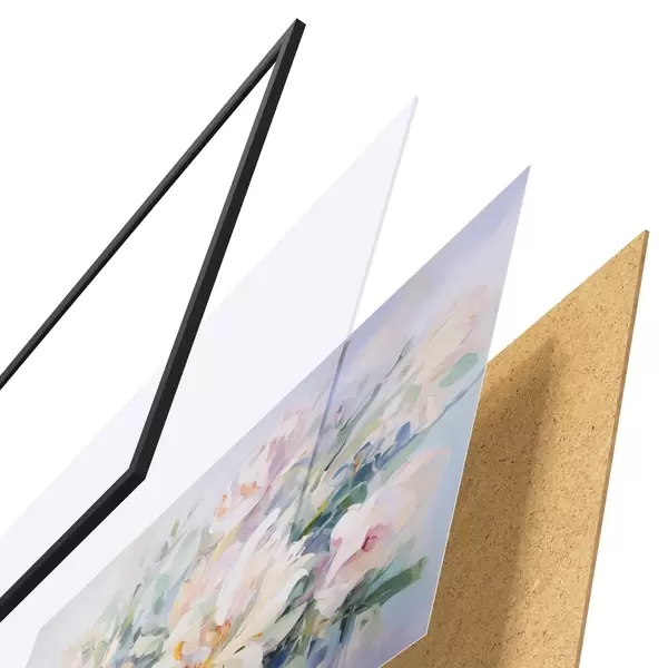 Das Poster besteht aus einem Rahmen, Plexiglas, einem gedruckten Bild und einer Rückwand aus Spanplatten. Dank der Halterungen auf der Rückseite kann das Poster sofort an die Wand gehängt werden.