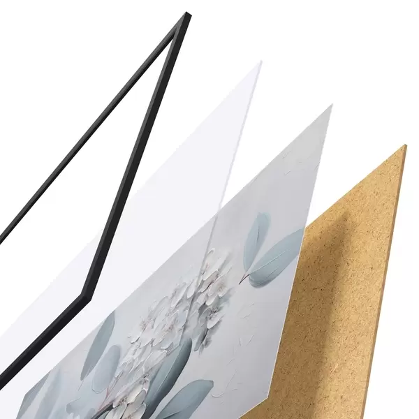 Das Poster besteht aus einem Rahmen, Plexiglas, einem gedruckten Bild und einer Rückwand aus Spanplatten. Dank der Halterungen auf der Rückseite kann das Poster sofort an die Wand gehängt werden.