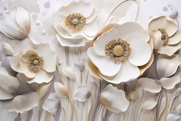 Poster Weiße Anemonenblüten mit gelber Mitte, mit minimalistischem Hintergrund, der ein zartes Blumenmuster ergibt Nr f43400