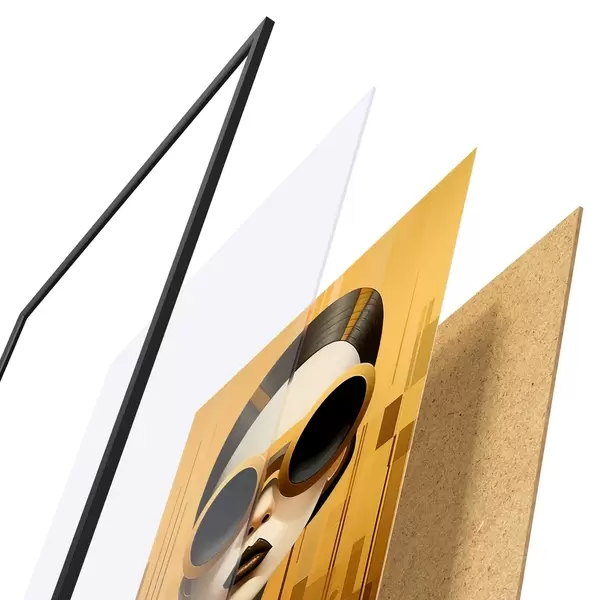 Das Poster besteht aus einem Rahmen, Plexiglas, einem gedruckten Bild und einer Rückwand aus Spanplatten. Dank der Halterungen auf der Rückseite kann das Poster sofort an die Wand gehängt werden.