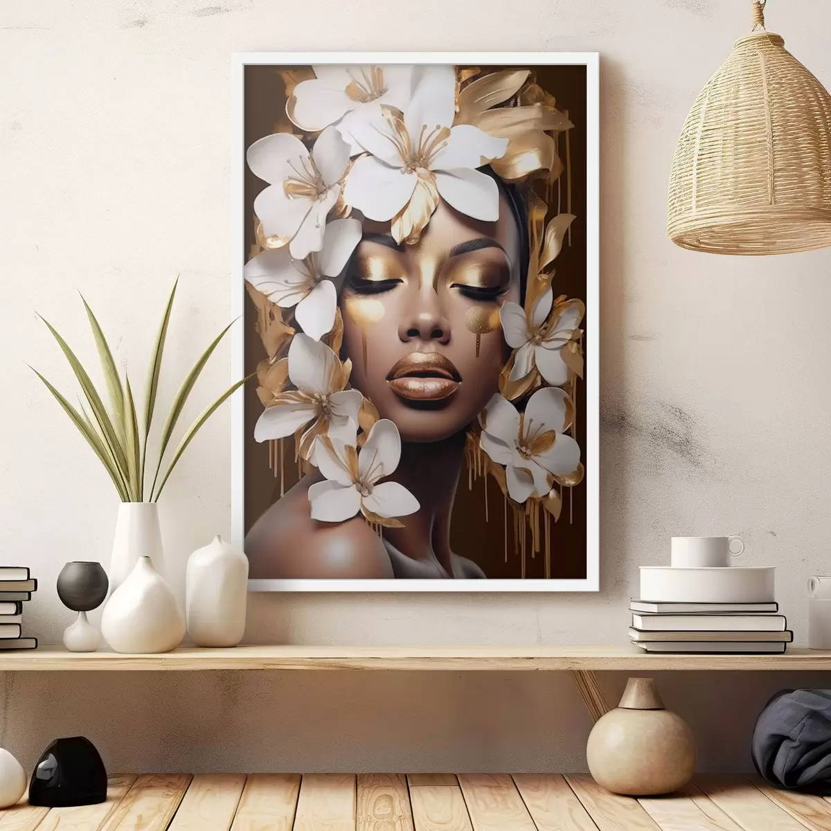 Poster Weibliches Porträt mit floralen Elementen Nr f43417