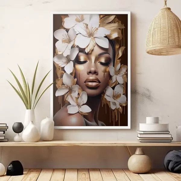 Poster Weibliches Porträt mit floralen Elementen f43417