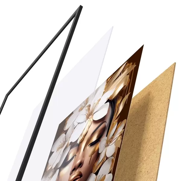 Das Poster besteht aus einem Rahmen, Plexiglas, einem gedruckten Bild und einer Rückwand aus Spanplatten. Dank der Halterungen auf der Rückseite kann das Poster sofort an die Wand gehängt werden.