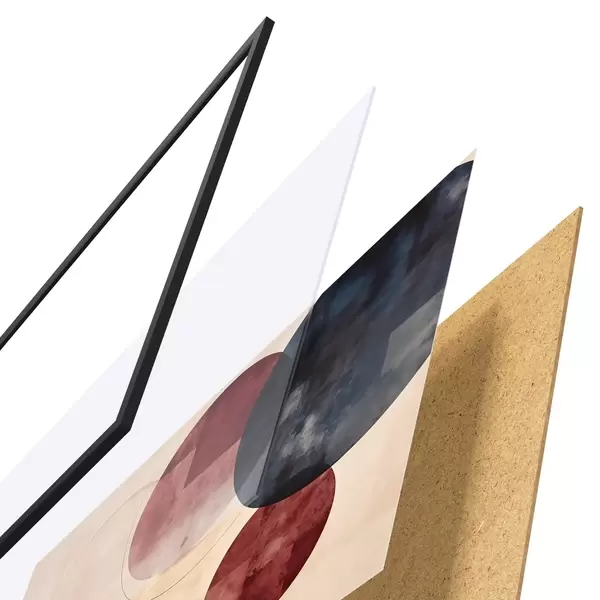 Das Poster besteht aus einem Rahmen, Plexiglas, einem gedruckten Bild und einer Rückwand aus Spanplatten. Dank der Halterungen auf der Rückseite kann das Poster sofort an die Wand gehängt werden.