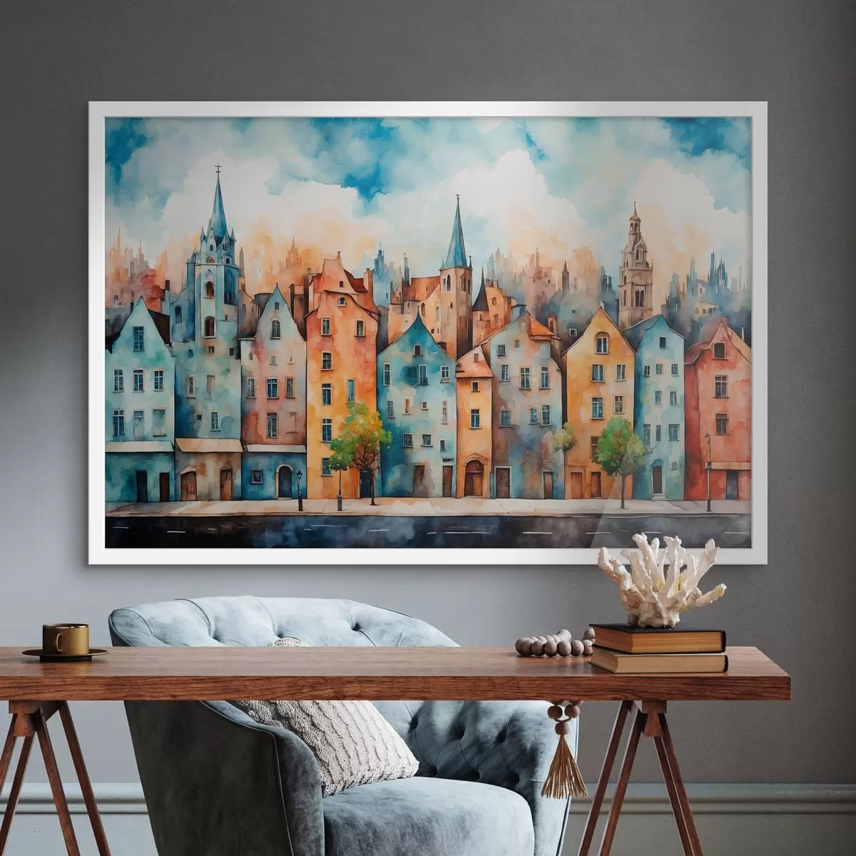 Poster Europäische Stadt im Stil Aquarellmalerei f43441