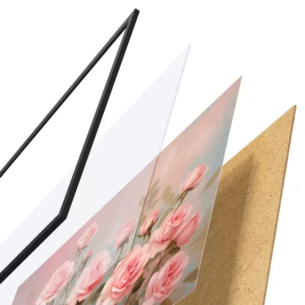 Das Poster besteht aus einem Rahmen, Plexiglas, einem gedruckten Bild und einer Rückwand aus Spanplatten. Dank der Halterungen auf der Rückseite kann das Poster sofort an die Wand gehängt werden.