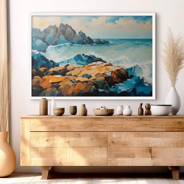 Poster Wellen prallen auf Felsen Nr f43458