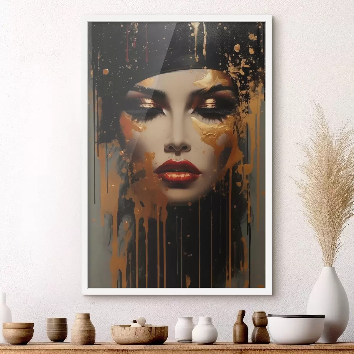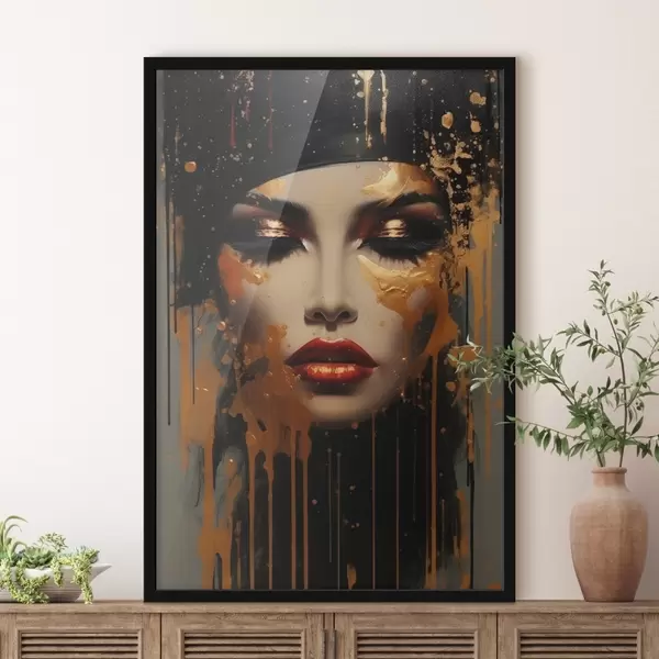 Poster Gesicht eines Mädchens mit gelber Farbe f43468