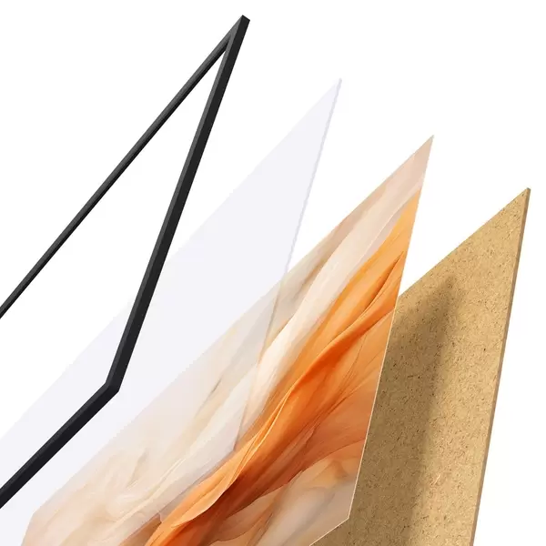 Das Poster besteht aus einem Rahmen, Plexiglas, einem gedruckten Bild und einer Rückwand aus Spanplatten. Dank der Halterungen auf der Rückseite kann das Poster sofort an die Wand gehängt werden.