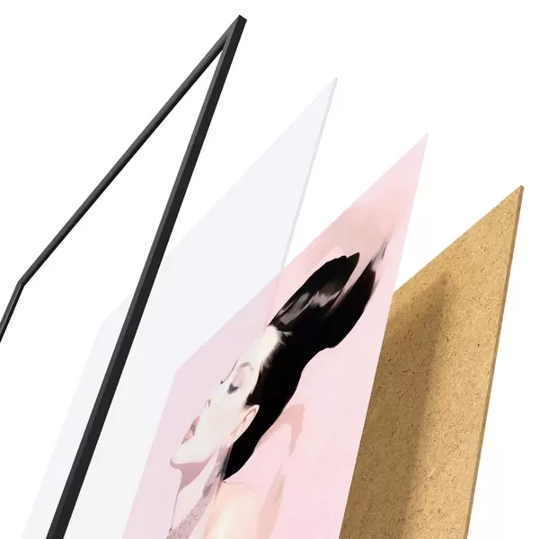 Das Poster besteht aus einem Rahmen, Plexiglas, einem gedruckten Bild und einer Rückwand aus Spanplatten. Dank der Halterungen auf der Rückseite kann das Poster sofort an die Wand gehängt werden.