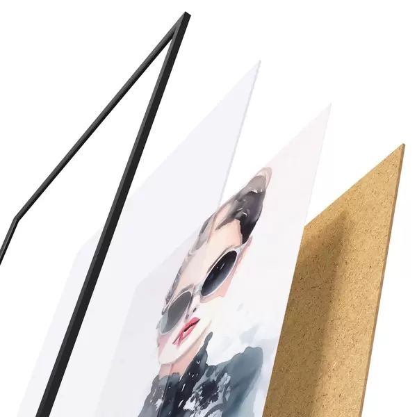 Das Poster besteht aus einem Rahmen, Plexiglas, einem gedruckten Bild und einer Rückwand aus Spanplatten. Dank der Halterungen auf der Rückseite kann das Poster sofort an die Wand gehängt werden.