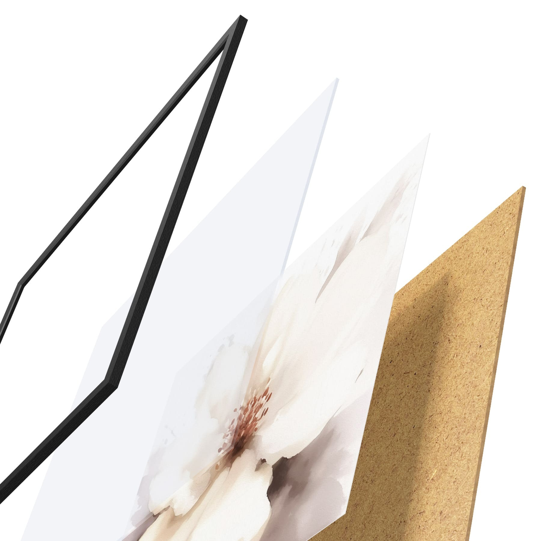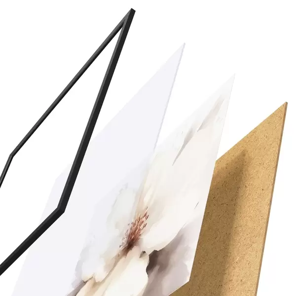 Das Poster besteht aus einem Rahmen, Plexiglas, einem gedruckten Bild und einer Rückwand aus Spanplatten. Dank der Halterungen auf der Rückseite kann das Poster sofort an die Wand gehängt werden.