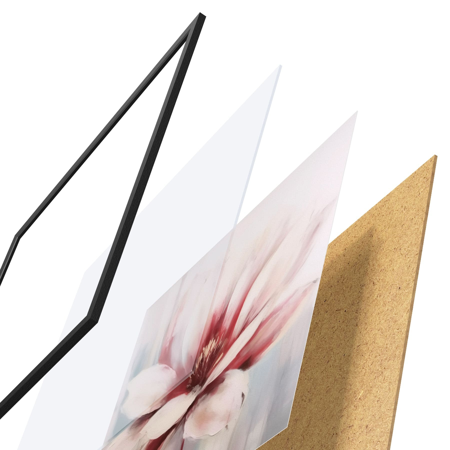 Das Poster besteht aus einem Rahmen, Plexiglas, einem gedruckten Bild und einer Rückwand aus Spanplatten. Dank der Halterungen auf der Rückseite kann das Poster sofort an die Wand gehängt werden.