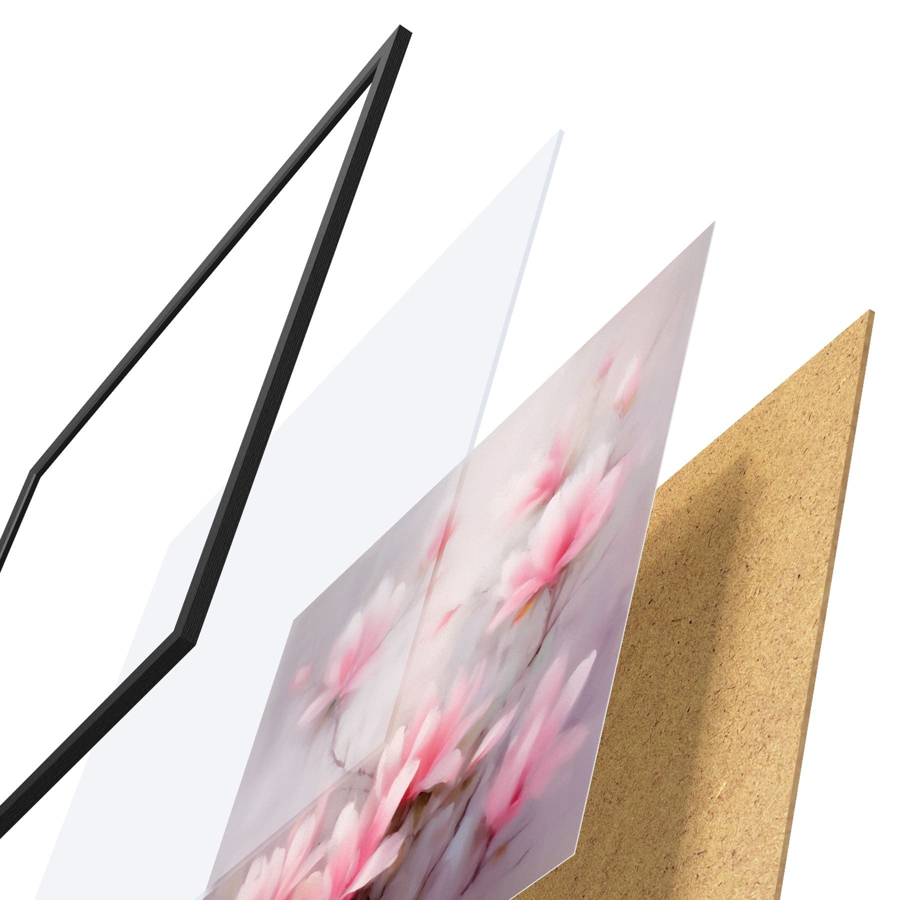 Das Poster besteht aus einem Rahmen, Plexiglas, einem gedruckten Bild und einer Rückwand aus Spanplatten. Dank der Halterungen auf der Rückseite kann das Poster sofort an die Wand gehängt werden.