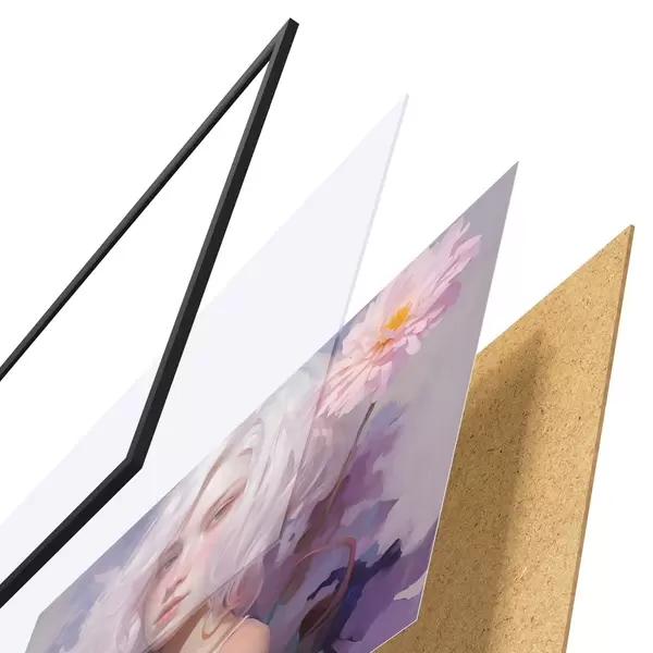Das Poster besteht aus einem Rahmen, Plexiglas, einem gedruckten Bild und einer Rückwand aus Spanplatten. Dank der Halterungen auf der Rückseite kann das Poster sofort an die Wand gehängt werden.