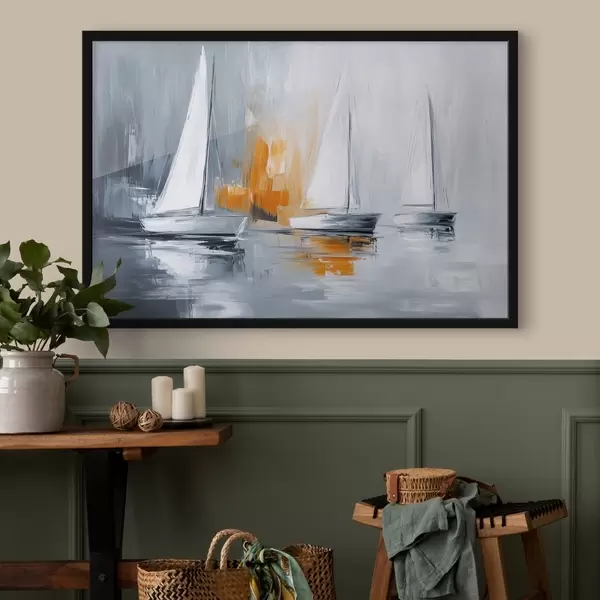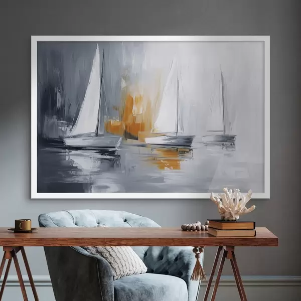 Poster Segelboote, Abstraktion, Zeichnung im Acrylstil, grau und orange f43499