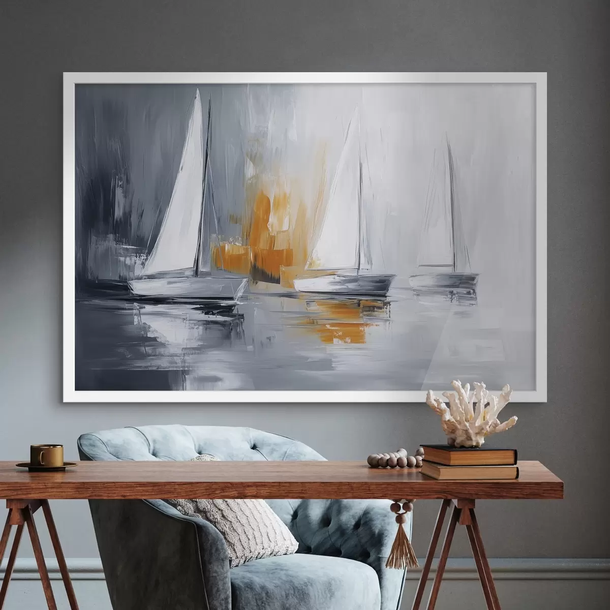 Poster Segelboote, Abstraktion, Zeichnung im Acrylstil, grau und orange Nr f43499