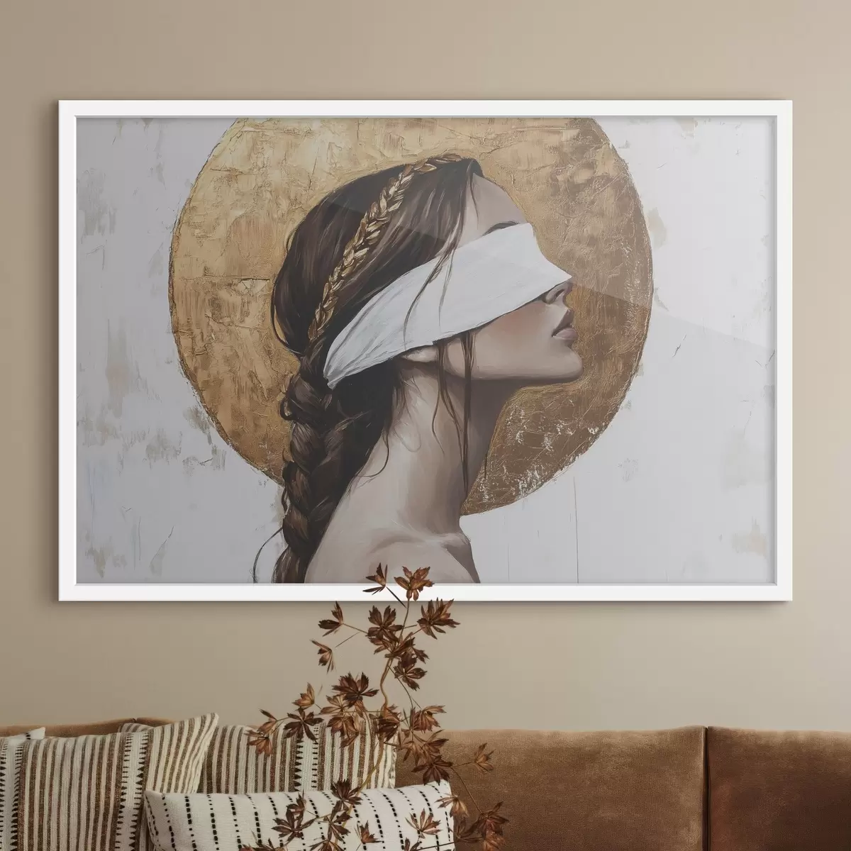 Poster Frau mit Augenbinde, Griechenland, Zeichnung im Acrylstil f43502