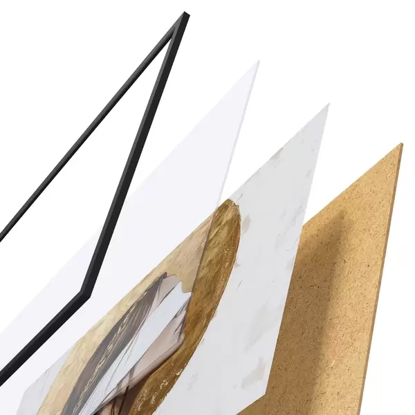 Das Poster besteht aus einem Rahmen, Plexiglas, einem gedruckten Bild und einer Rückwand aus Spanplatten. Dank der Halterungen auf der Rückseite kann das Poster sofort an die Wand gehängt werden.
