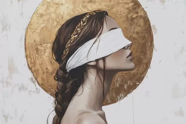 Poster Frau mit Augenbinde, Griechenland, Zeichnung im Acrylstil Nr f43502