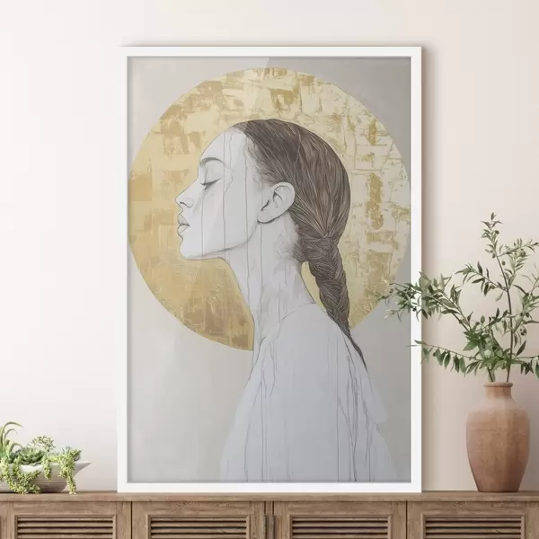 Poster Frau Porträt, Minimalismus, Acryl-Stil, beige Farben f43504