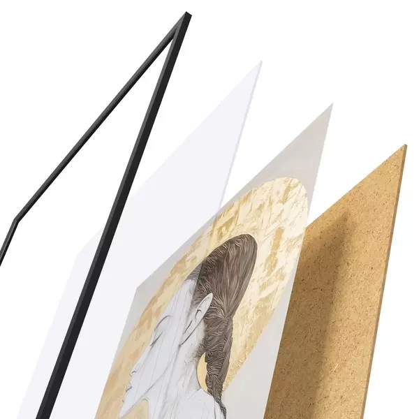 Das Poster besteht aus einem Rahmen, Plexiglas, einem gedruckten Bild und einer Rückwand aus Spanplatten. Dank der Halterungen auf der Rückseite kann das Poster sofort an die Wand gehängt werden.