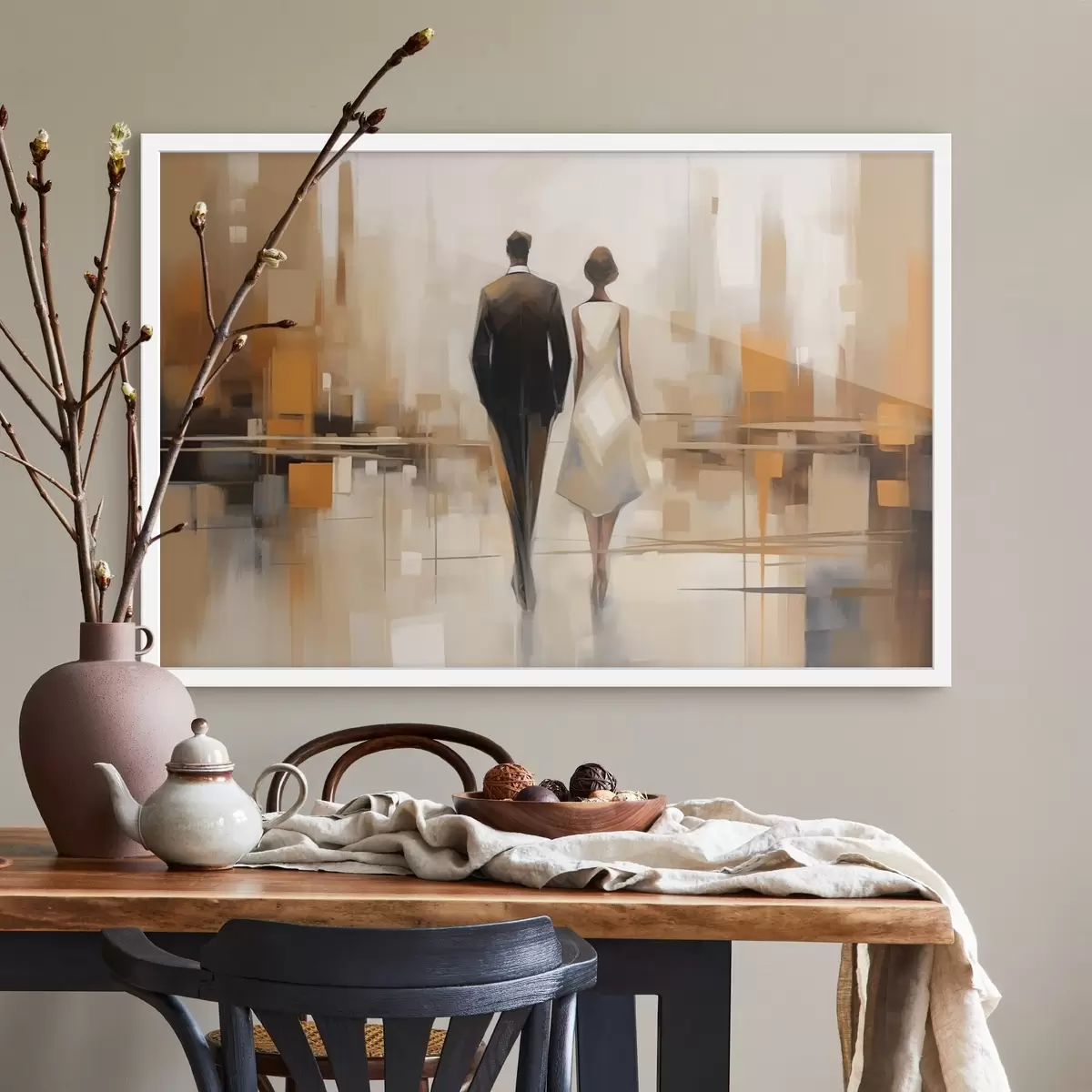 Poster Abstraktion mit Stadtsilhouetten und zwei Figuren f43516