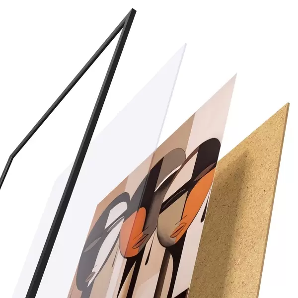 Das Poster besteht aus einem Rahmen, Plexiglas, einem gedruckten Bild und einer Rückwand aus Spanplatten. Dank der Halterungen auf der Rückseite kann das Poster sofort an die Wand gehängt werden.