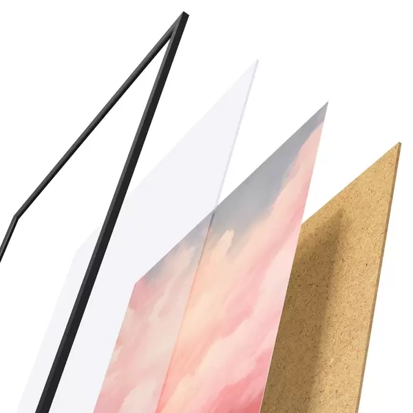 Das Poster besteht aus einem Rahmen, Plexiglas, einem gedruckten Bild und einer Rückwand aus Spanplatten. Dank der Halterungen auf der Rückseite kann das Poster sofort an die Wand gehängt werden.