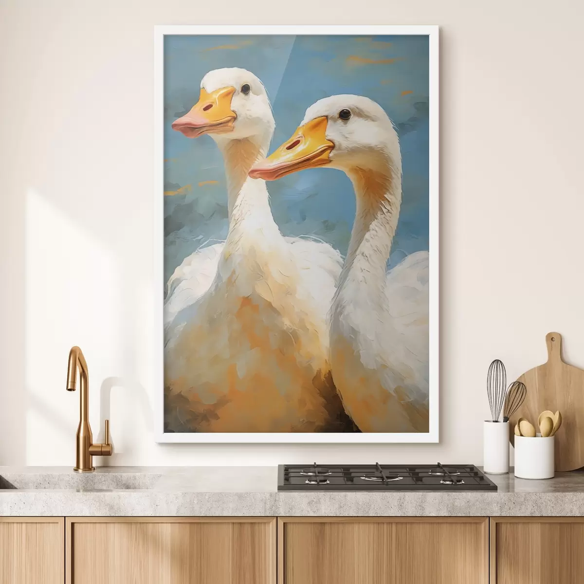 Sie können das Bild an Schrauben aufhängen. Dazu legen wir unseren Bildern Halterungen bei, mit denen Sie das Bild bequem aufhängen können.