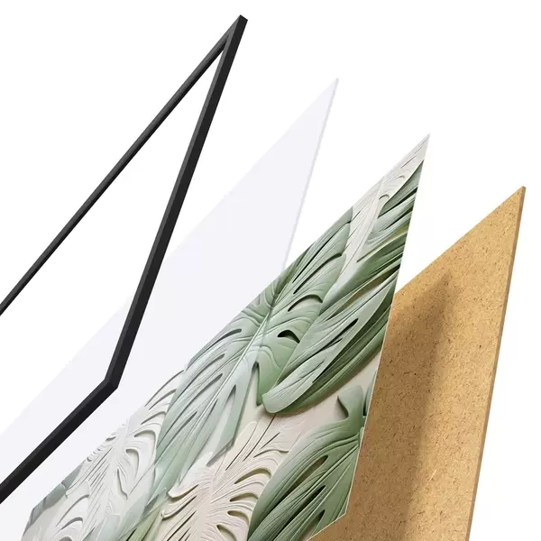 Das Poster besteht aus einem Rahmen, Plexiglas, einem gedruckten Bild und einer Rückwand aus Spanplatten. Dank der Halterungen auf der Rückseite kann das Poster sofort an die Wand gehängt werden.