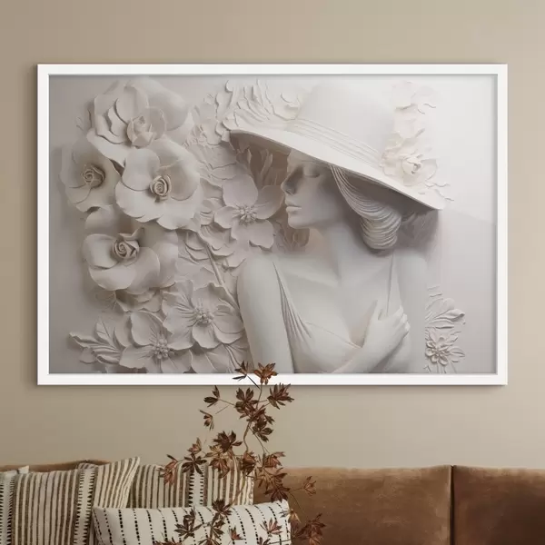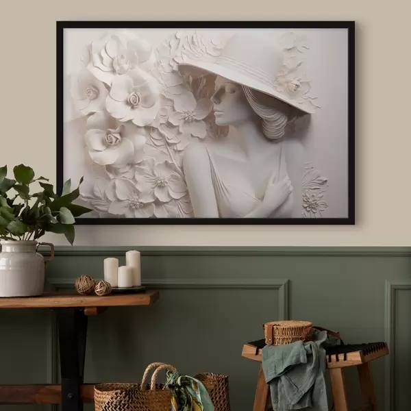 Poster Nachgeahmtes Flachrelief einer Frau mit Hut f43547