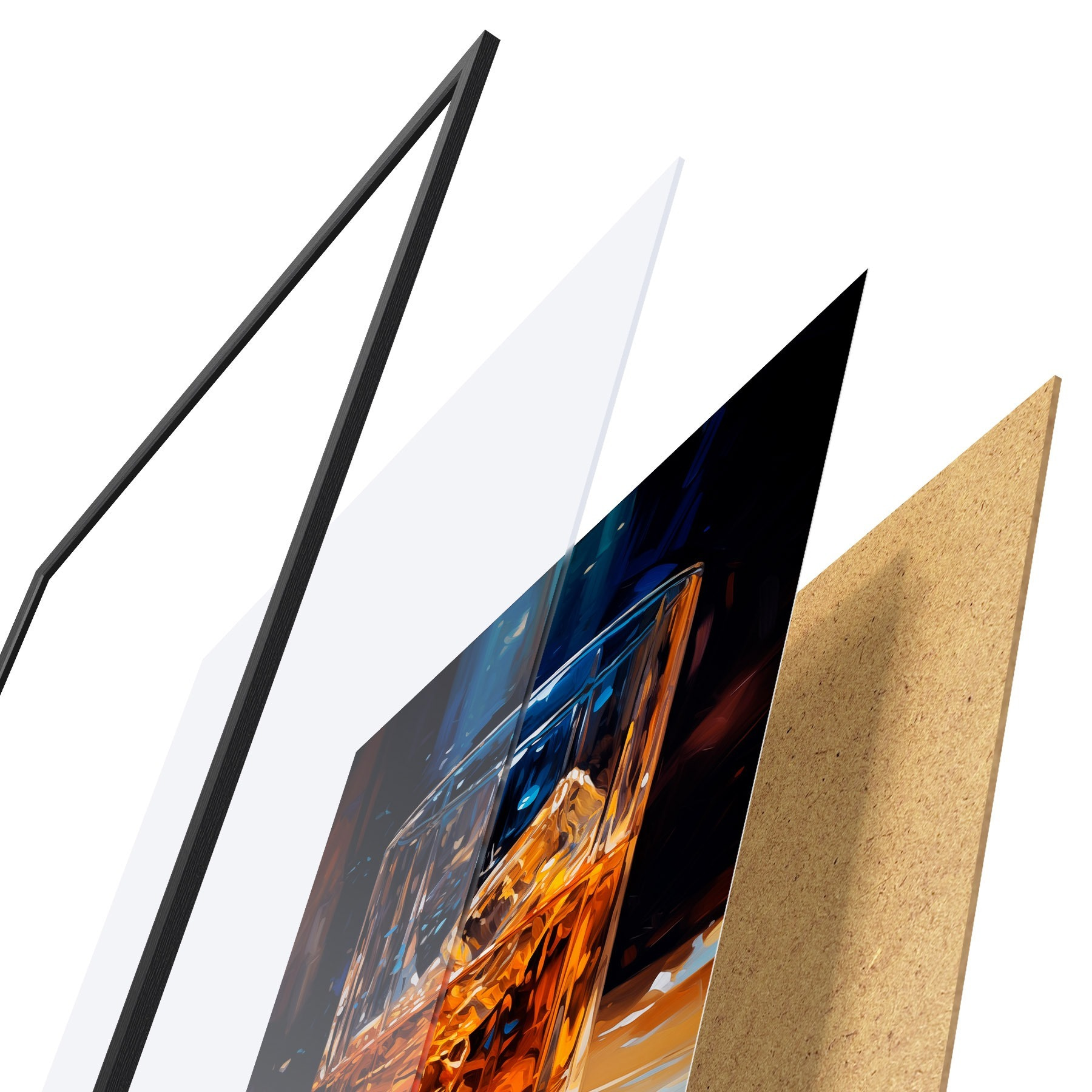 Das Poster besteht aus einem Rahmen, Plexiglas, einem gedruckten Bild und einer Rückwand aus Spanplatten. Dank der Halterungen auf der Rückseite kann das Poster sofort an die Wand gehängt werden.