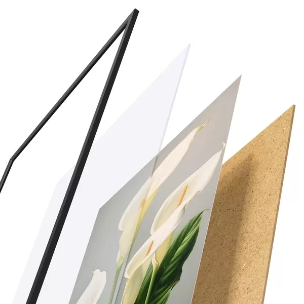 Das Poster besteht aus einem Rahmen, Plexiglas, einem gedruckten Bild und einer Rückwand aus Spanplatten. Dank der Halterungen auf der Rückseite kann das Poster sofort an die Wand gehängt werden.