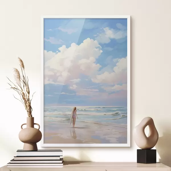 Poster Mädchen surfen im Meer, Sommer, Wellen, Acryl-Stil Nr f43882