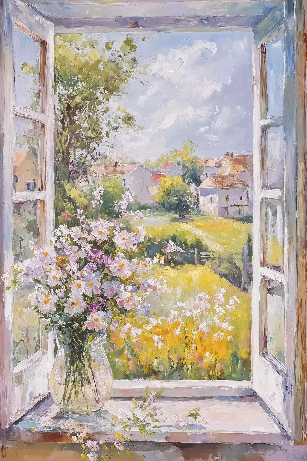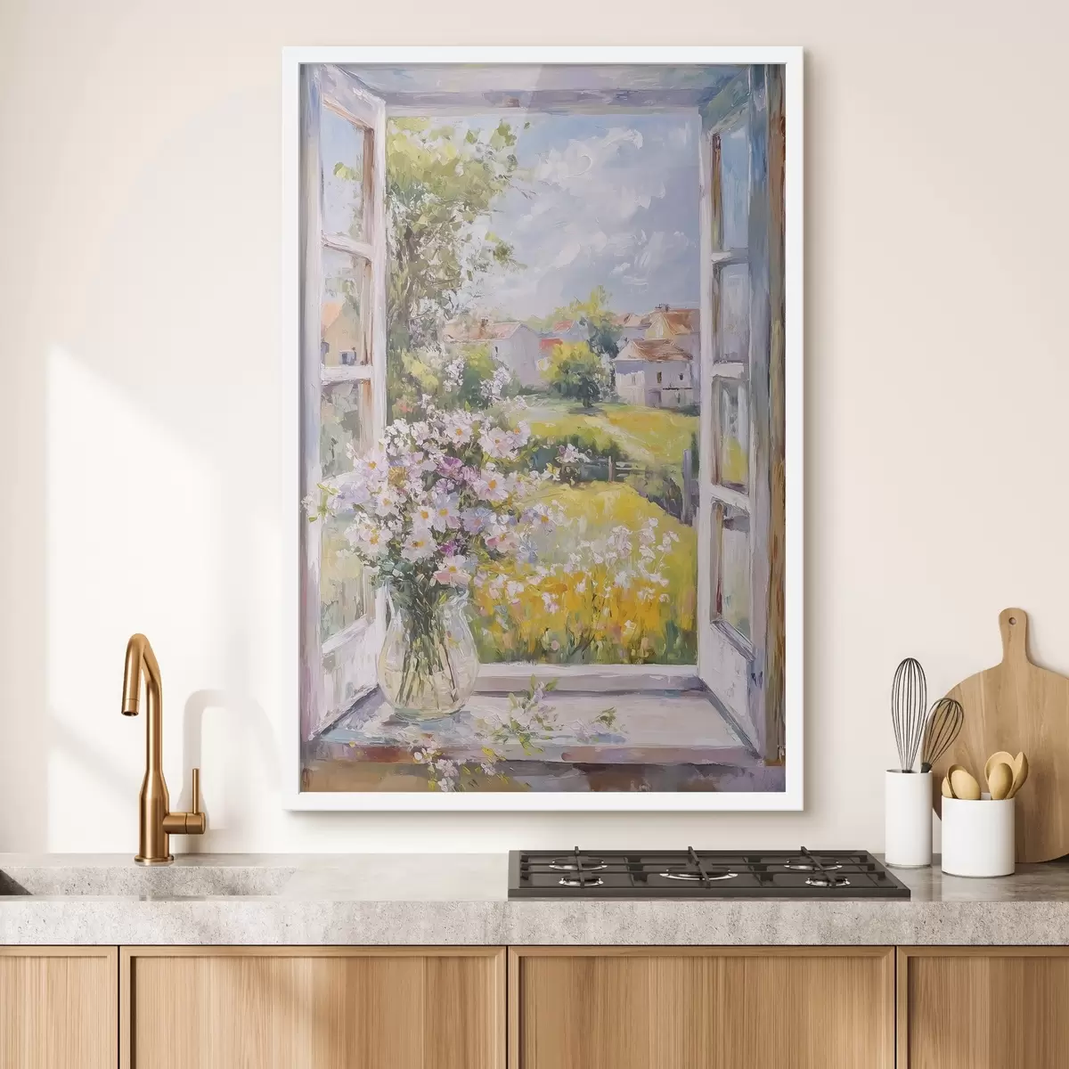 Poster Sommer auf dem Dorf, rustikal, Ölzeichnung, Blumen in Vase Nr f43889