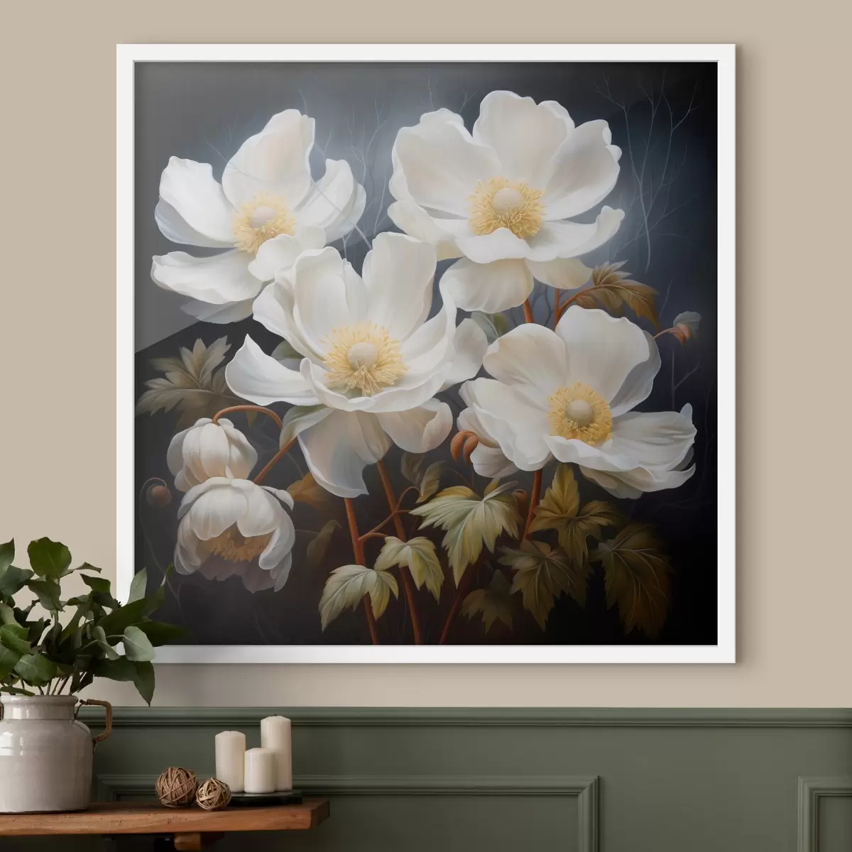 Poster Elegante weiße Blumen im Abendlicht f43901